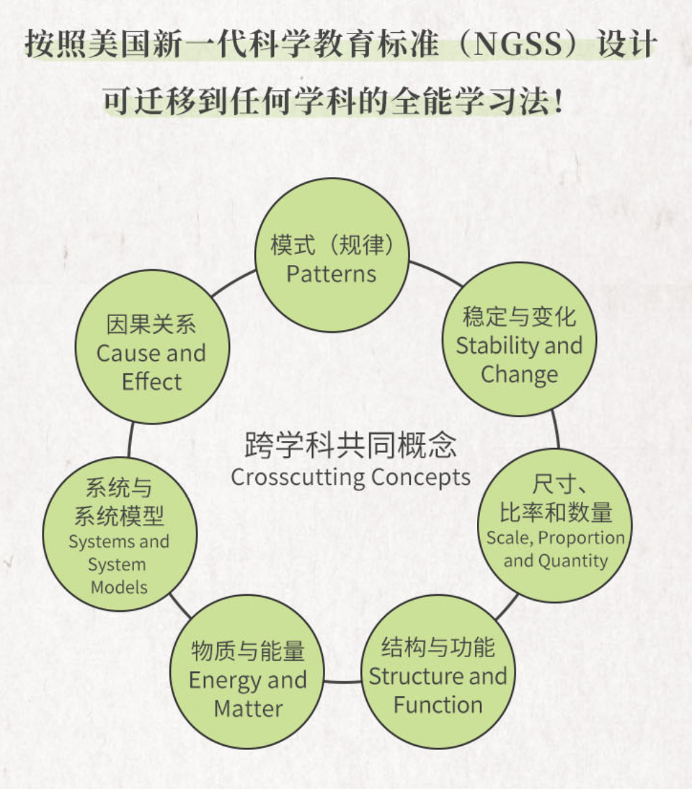 现在答案来啦!跨学科共同概念(Crosscutting Concepts)来帮你!面对当下无数学科和领域的知识,如果掌握了一套通用的学习方法,对孩子来说,将会事半功倍。